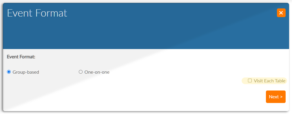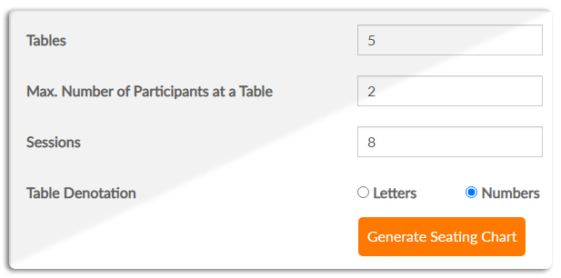 Max. Number of Participants at a Table should be 2, as this is a one-on-one event. But you can modify this figure if you prefer group meetings.
