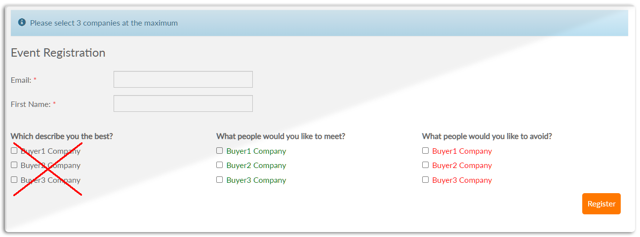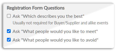 You will probably know all of your buyers long before the event. Therefore you don't need them to register by themselves. The registration form is only for the suppliers. If you turn this option off, we'll ask only for the buyers your suppliers want to meet:
