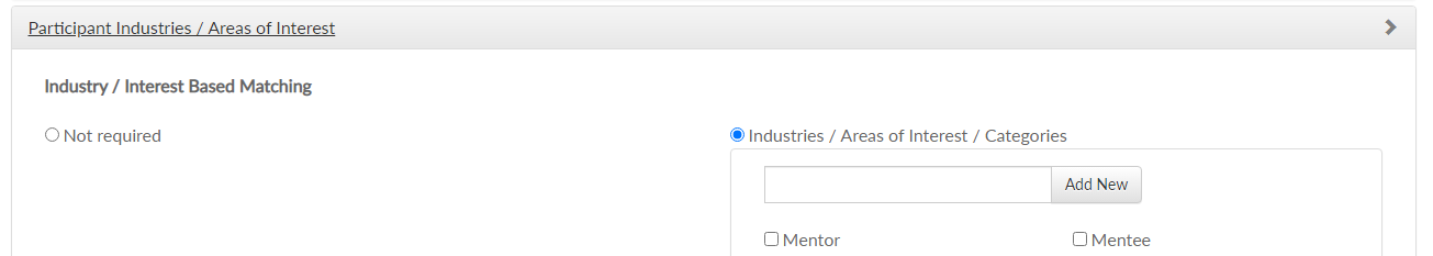 In a simpler model there should be just two categories (areas of interest): for example Mentor and Mentee. This will also work