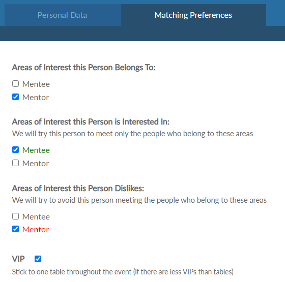 There are two concepts in MixerSeater that will be of much help in our scenario. VIPs stick to their tables throughout the whole event. So you need to mark your employers (buyers, mentors, etc.) as VIPs.