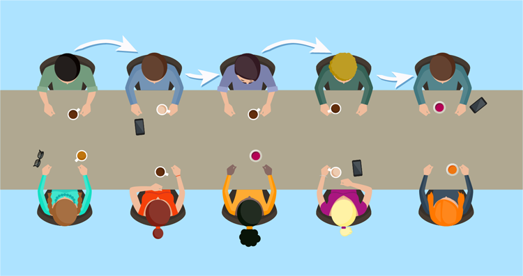 If your venue doesn't allow for the traditional setup or you're aiming for a bit more intimacy, like in a regular restaurant, consider numbering the tables. Women stay in their places, and men move to the table with the next number in sequence.