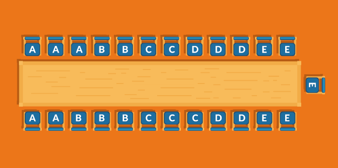 We have divided your table into 5 sectors named A-E. You can put those letters on the chairs so your guests know to which sector they should go in each session.